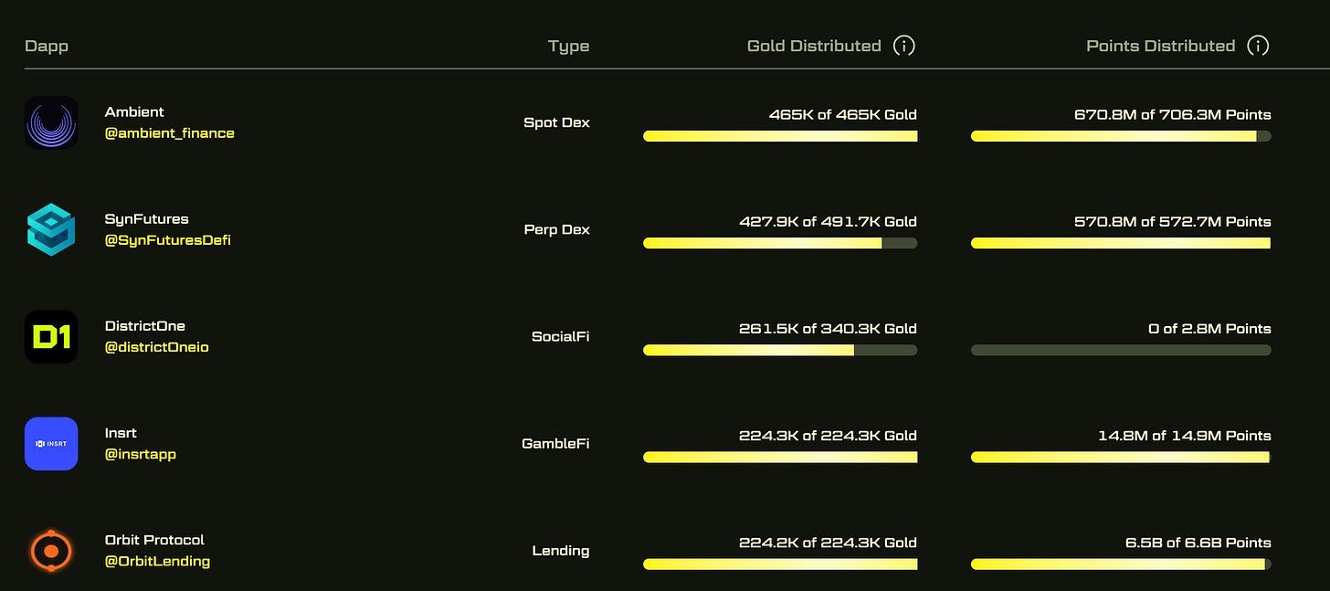 Thruster(598,748Gold)、Ambient(465,018Gold)となっており、Goldの配布が多いDEXです。Gold配布の基準が変更されなければ、今後もBlastからのGold配布も多くなる可能性があります。
