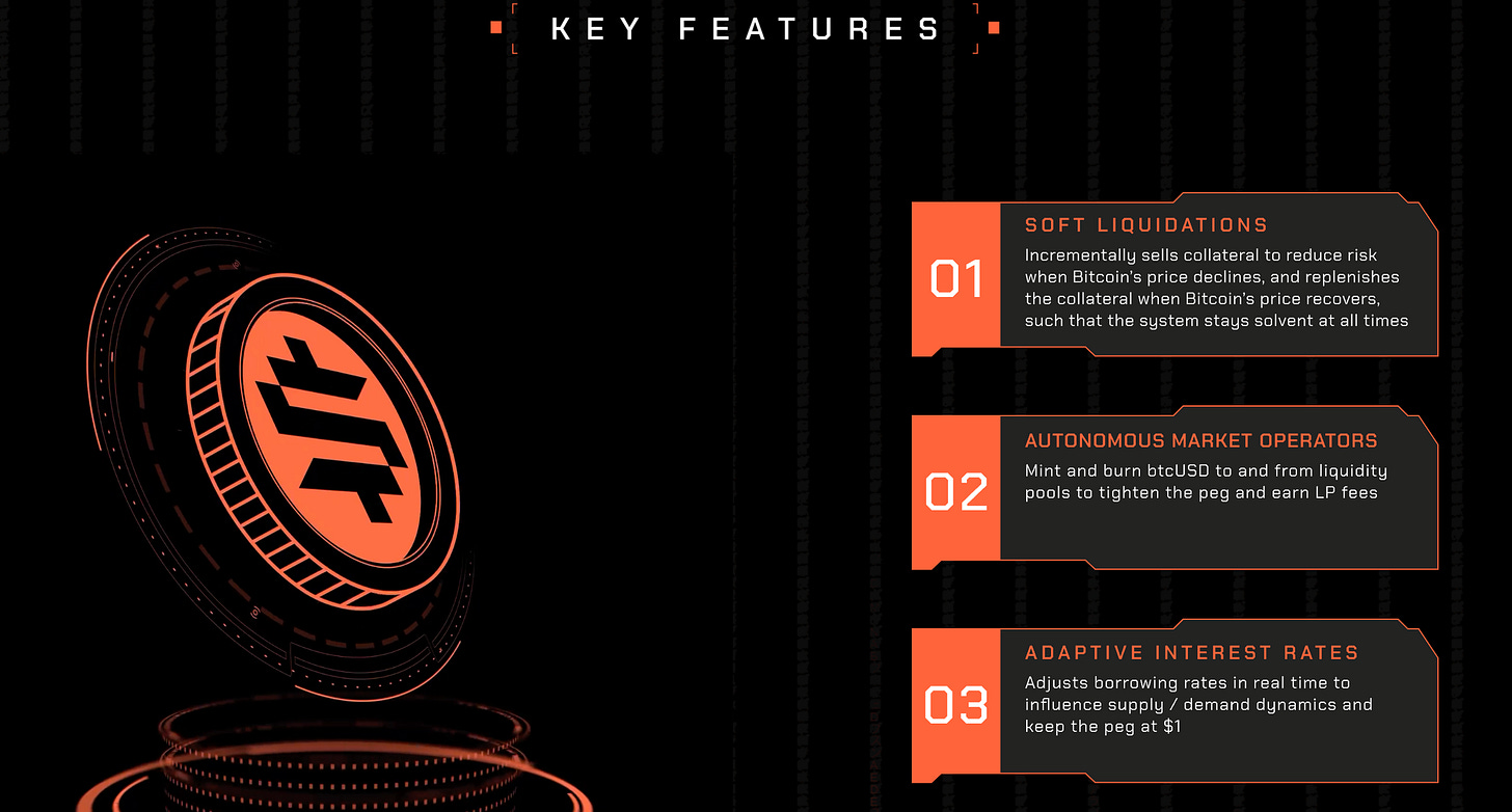 btcUSDは、Curveの crvUSD の最初のライセンスフォークであり、ソフト清算、ペッグ防御メカニズムを備えているそうです。