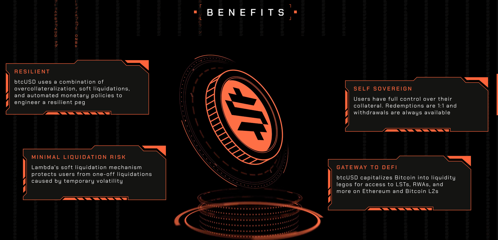 Lambda Finance - Introducing btcUSD - a permissionless and efficient Bitcoin-backed stablecoin.