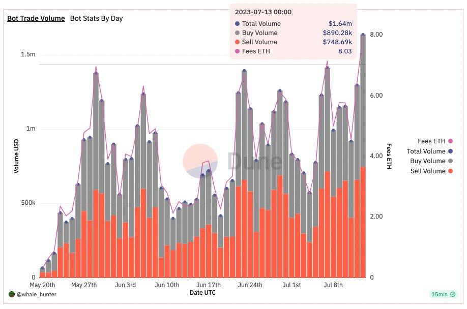 Telegramのボットは、これを書いている時点で非常に人気がある。特にUNIBOTというDEXでの取引を自動で行ってくれるボットでの取引出来高は、160万ドルを超えている。