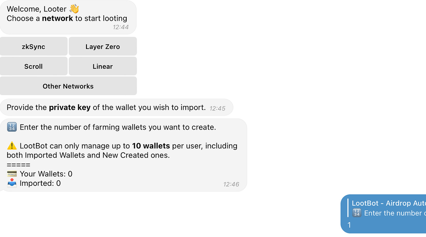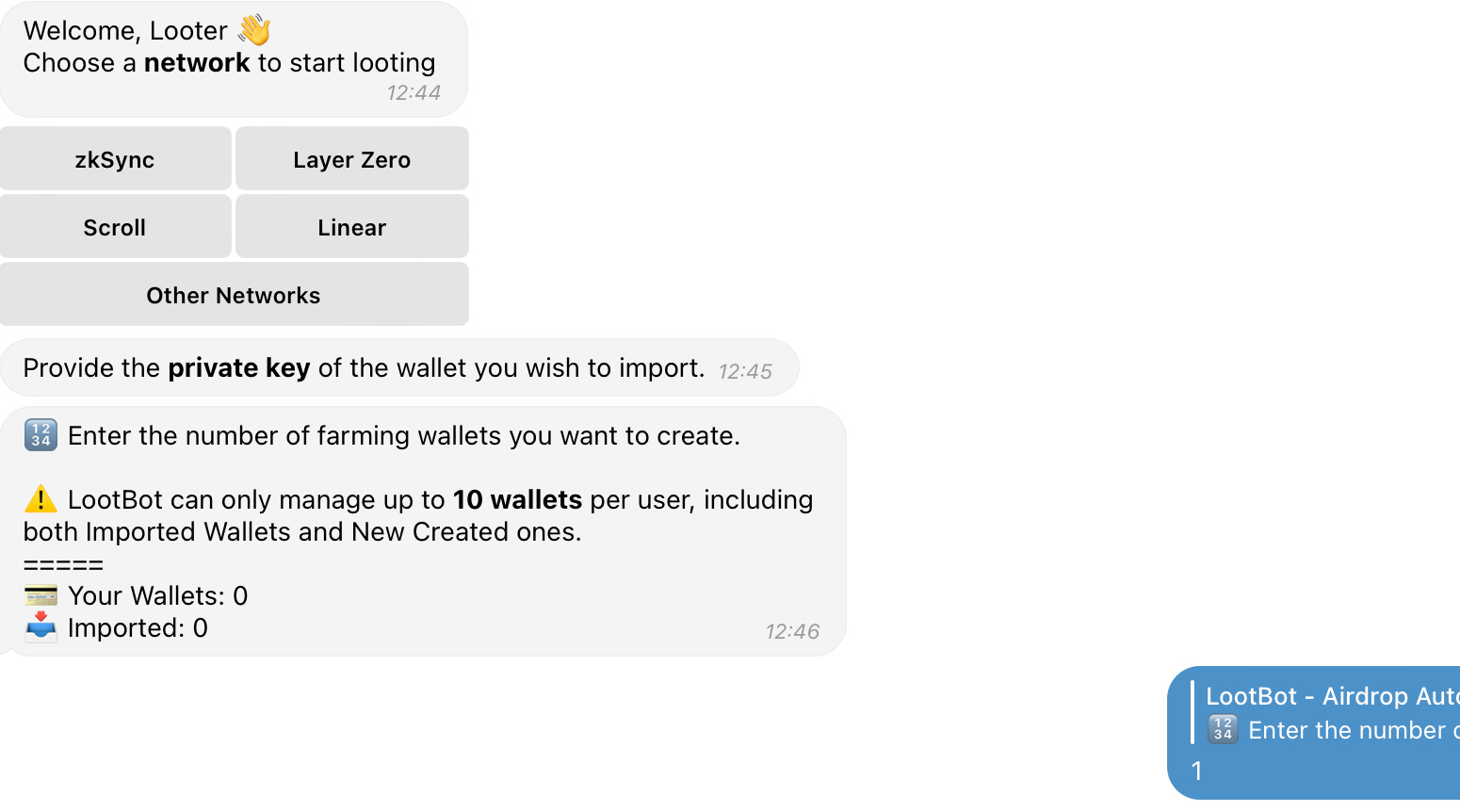 Lootbotとは、Telegramにおけるボットのひとつ。ウォレットの設定やエアドロップ戦略の実行を自動化することができる。