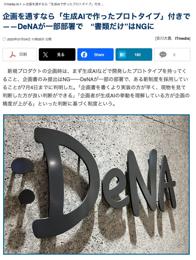 将来的に企画書の段階でプロトタイプを提出しないと承認されないという世界観は、遅かれ早かれ多くの企業で採用される未来が訪れるだろうと考えています。DeNAさんでは既にはじまっているそうです。