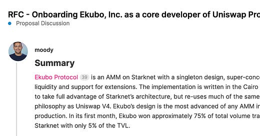 StarknetのUniswapV4ことEkuboによるUniswap DAOへの提案とその背景