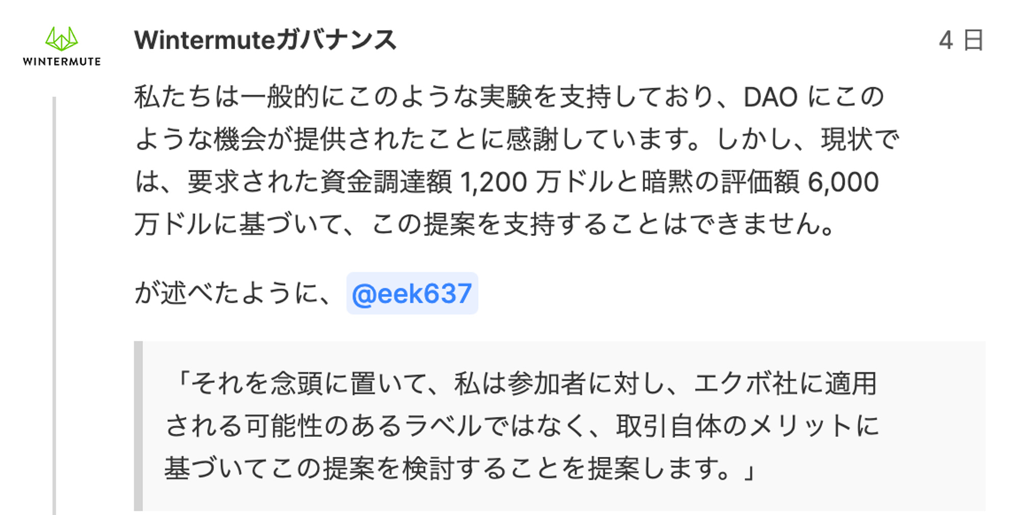 また、フォーラムでWintermuteがEkuboを評価額6000万ドルとしていることが支持できないといっている。